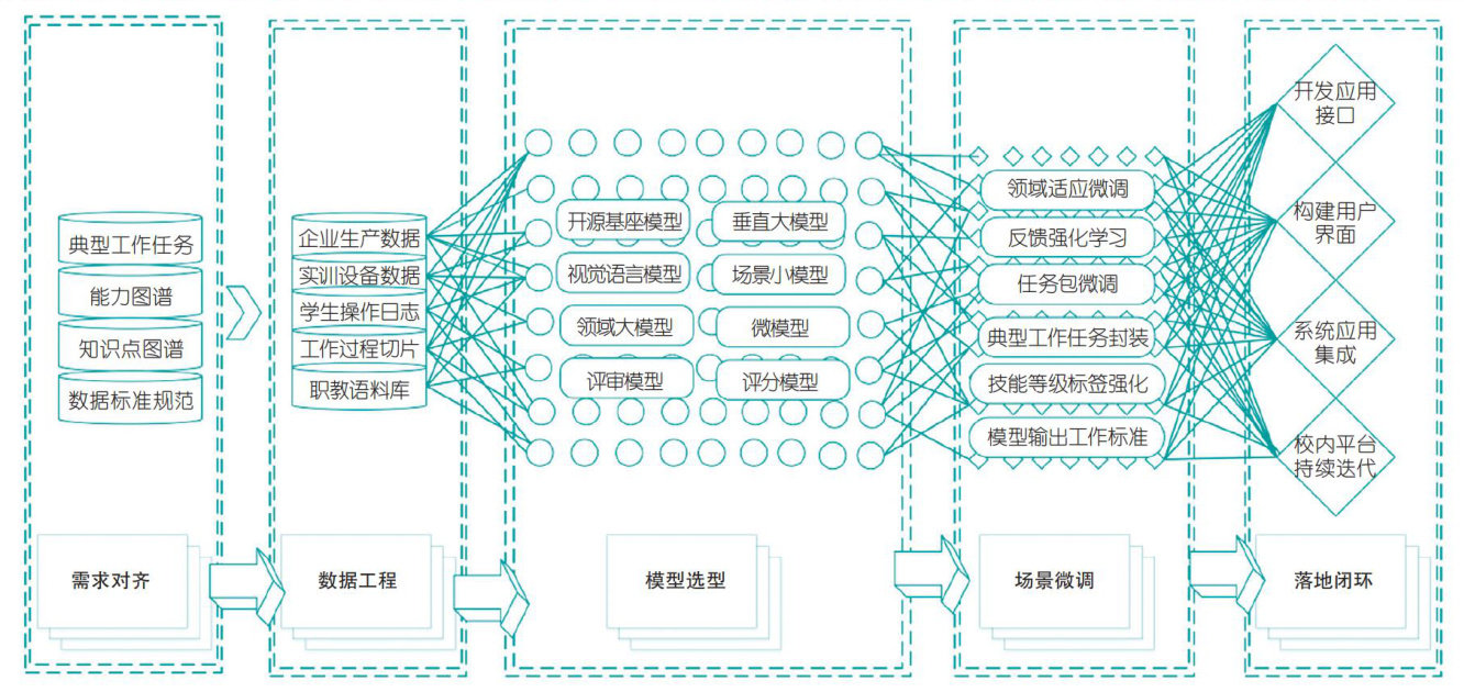 摘要生成式人工智能的全球兴起与应用推动着职业教育体系和职业技能人才培养结构的深层变革。生成式人工智能的强大数据分析与处理能力对职业教育专业设置和就业面向岗位产生直接影响,驱动职业教育核心要素重组与生态演进,重塑职业教育技能人才培养范式。基于设计研究范式,构建职业教育大模型的路径框架,具体包括需求对齐、数据工程、模型选型、场景微调、落地闭环等五个步骤。职业教育大模型的具体建设策略是:加强顶层设计与政策规划,优化资源整合与共享;聚焦数据治理与成效监测,立足服务师生教学与实践;重视全面推广与具体落地实施,保持持续优化与改进。