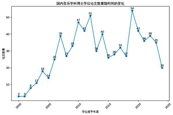 博士学位论文是学科阶段性成果的核心载体,能直观反映我国高层次学术人才的科研能力与学术水准[1]。每个学科的博士学位论文都是兼具理论探索、方法实践与观点创新的系统性成果。它既能为学科补充实证数据,又因聚焦前沿问题,为后续科研项目开展奠定基础[2]。近年来,国内学者运用知识图谱、Python 等工具对相关学科的博士学位论文进行定量分析,挖掘学科研究热点、难点和动态趋势,主要集中在思政[3]、教育[4]