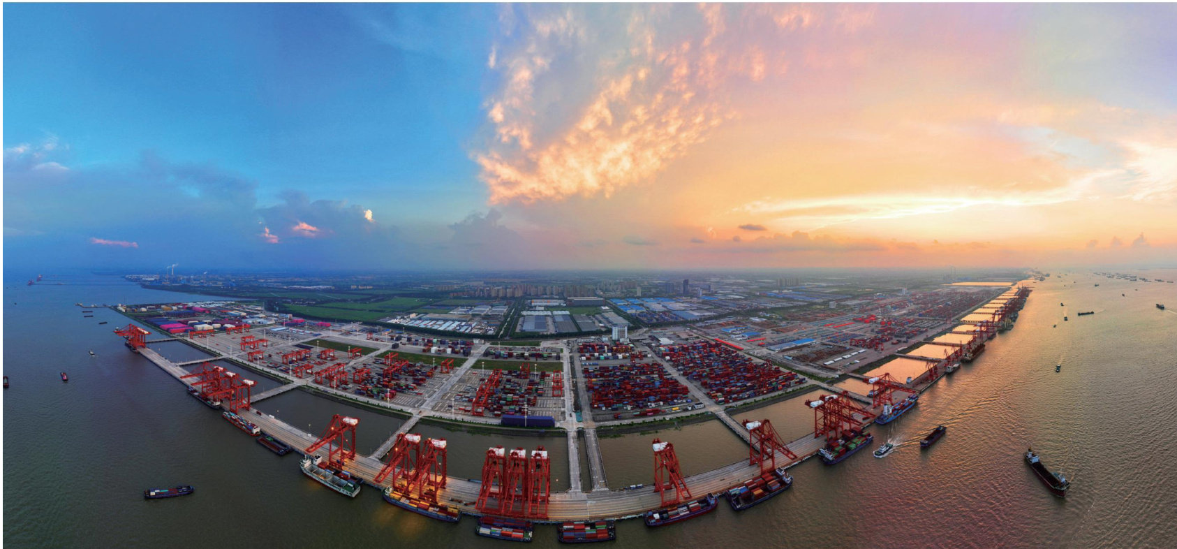 江海交汇处,日光水影其长天一色。时光倒转620年,同一片水域见证的却是另一番盛况:永乐三年(1405年)农历六月,太仓刘家港“舳舻相衔.帆樯林立”,郑和率领史上规模空前的远洋船队自此启航,“云帆高张,昼夜星驰”,开启七下西洋的壮阔征程。 从郑和船队的千帆竞发,到现代德企的精密齿轮,这座江南明珠在长江口壮阔完成了一场跨越600年的时空对话。 站在的观景台上眺望,眼前是这蕃景象:巨型桥吊如钢铁巨人