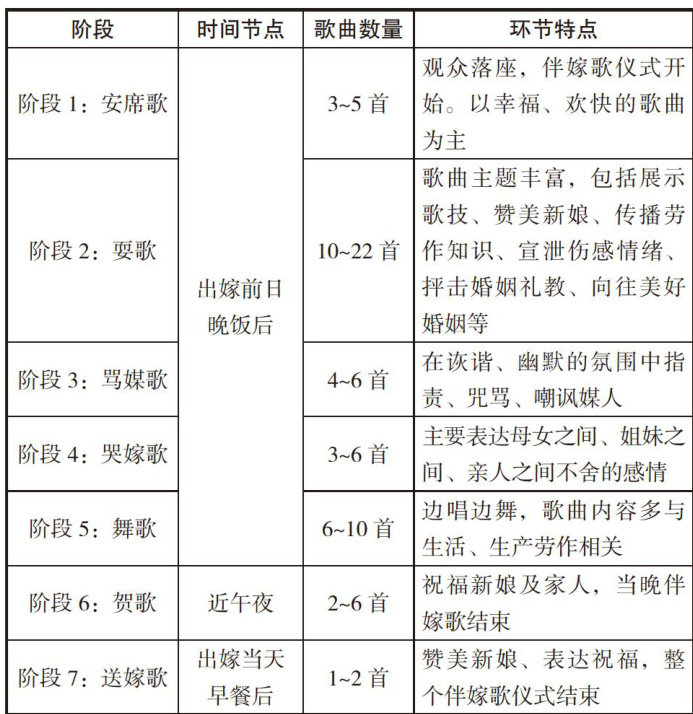 [摘要」基于田野调查,探讨了社会变迁下嘉禾伴嫁歌仪式结构的存续与调适。研究发现,其仪式结构呈现出“动态稳定性”的特征:宏观上保留了“前夜一翌晨”的二元框架与七个阶段的固定序列,维系了文化认同与情感逻辑;微观上则展现出显著弹性,表现为环节的可删减、歌曲数量的灵活调整及“核心固定、边缘灵活”的编排机制。同时,仪式通过巧妙融入现代音乐元素,实现了传统与现代的有机融合。该案例表明,“框架固定、内容可变”的弹性结构是其实现可持续传承的关键机制,为非物质文化遗产的当代保护提供了重要启示。