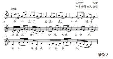 [摘要」“盘子歌”是贵州黔西南普安县婚嫁仪式中的一种民俗音乐,具有仪式程序与歌曲演唱的双重含义。基于田野调查资料,考察其仪式流程并分析其音乐形态特征,旨在为其建立一份田野档案,同时为后续相关研究提供一些参考。