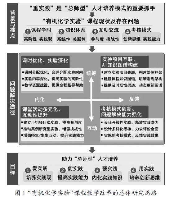 摘 要:在国家对高端科技人才需求迫切的背景下,本文结合西北工业大学“总师育人文化”对学生实践观培养的要求,从优化课程课时安排、建立实验项目内在联系、设计课堂教学活动及建立多元化考核模式等方面,对“有机化学实验”课程教学模式进行了探索与改革。实践结果表明,教学改革有效提升了课程教学效果,显著增强了学生的动手能力与创新意识,实现了知识传授与能力培养的双重教学目标,形成了“总师育人文化”引领下高素质、强
