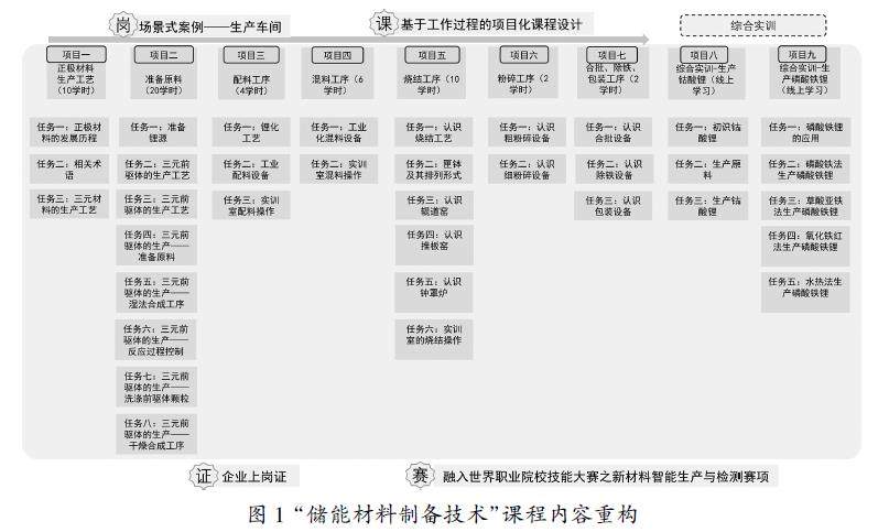 摘 要:随着新能源行业的高速发展,储能材料产业势头强劲,相关人才需求源源不断。储能材料技术专业每年向行业输送大量技术技能人才。本文分析核心专业课储能材料制备技术的教学困境,以“基于工作过程”的理念对课程进行项目化设计,重构教学内容,以高温固相法生产工艺流程构建课程框架,将科研项目转化为课程项目,采用ADDIE模型更新教学模式,进行线上线下互动教学。改革课程的考核评价方式,增加了课程思政考核、劳动考