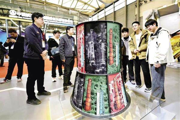 3月12~14日,以“把握商业航天机遇、共赢太空经济未来”为主题的2026首届上海商业航天大会暨展览会在上海新国际博览中心举行,现场汇聚超300家产业链上下游核心企业参展,完整覆盖商业航天全生命周期产业生态,展品范围实现从底层技术到终端应用的全覆盖。图为3月12日观众在参观一款卫星承力桶。 新华社记者张建松摄