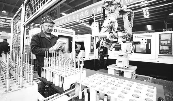 3月5日,在山西转型综改示范区晋中开发区经纬智能锭子厂生产现场,工人正在操作自动化设备,进行细纱机核心零件棉纺专件锭子产品的精密加工与装配,全力保障订单按期交付。 刘勇摄