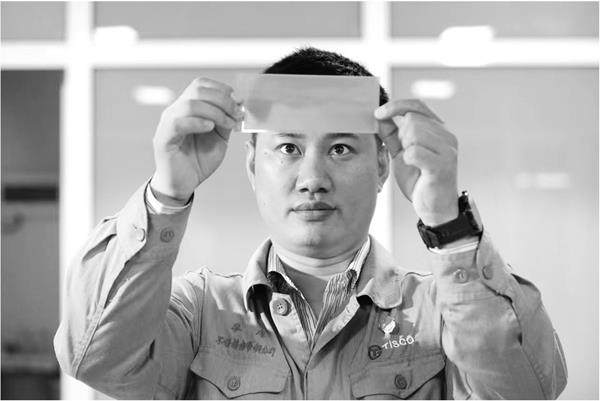 1月26日,山西太钢不锈钢精密带钢有限公司首席精密箔材工艺工程师廖席查看第三代新品掩膜板用4J36膨胀合金。 从0.02毫米宽幅不锈钢领域的首创产品,到0.015毫米不锈钢精密箔材,再到掩膜板用4J36膨胀合金第三代新品,近年来,太钢不锈钢以“材料极限突破”和“卡脖子技术攻坚”为核心,持续打造全球不锈钢技术策源地,不仅打破了尖端材料领域的长期国外垄断,更在全球不锈钢产业技术高地筑牢了中国