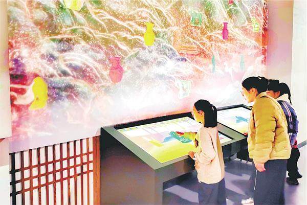 1月16日,长治市博物馆琉璃艺术馆内,游客在数字触摸屏上体验琉璃上釉工艺。长治市博物馆新馆自元旦面向公众试运行以来,市民争相打卡游览,感受上党地区的历史文化魅力。 王少杰摄